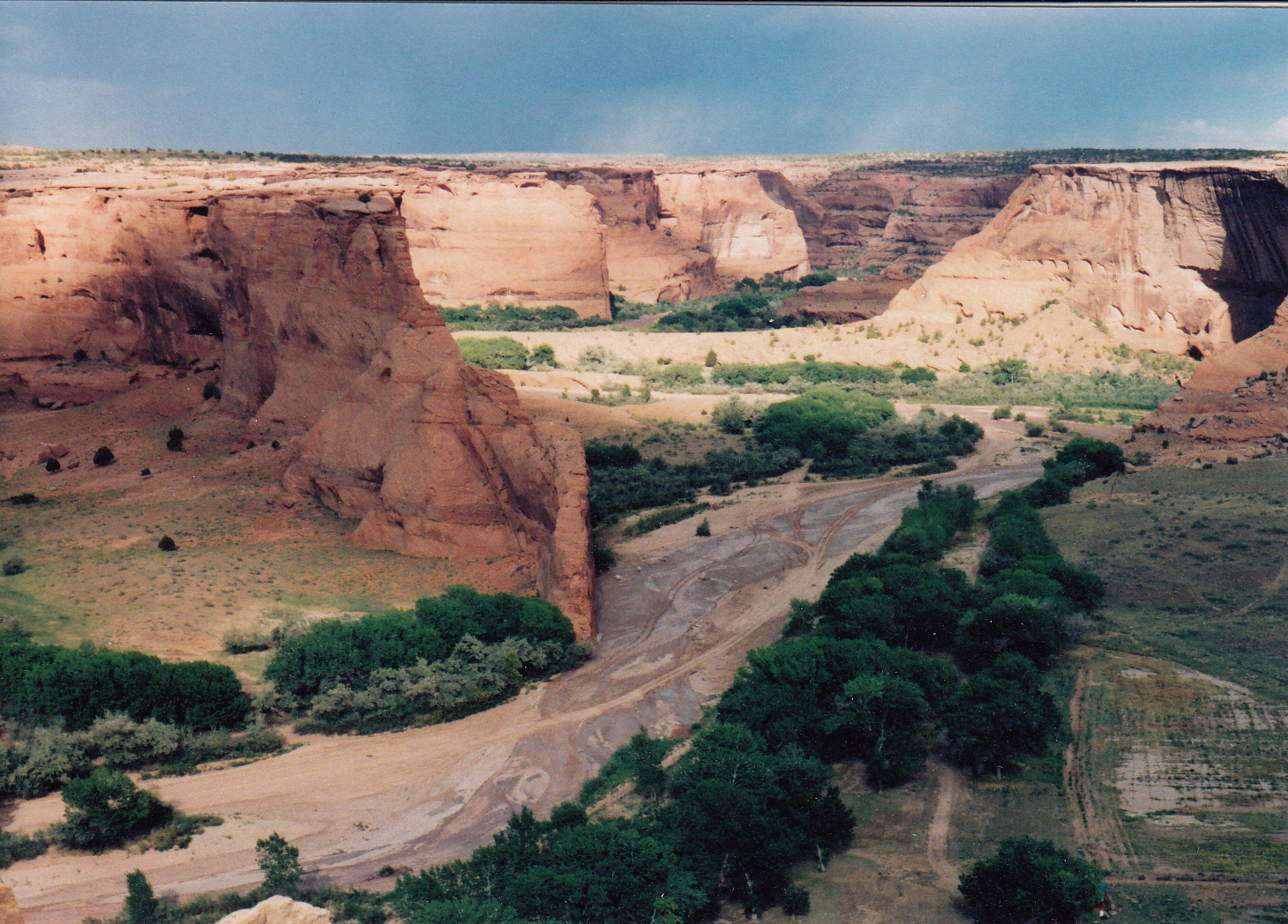 I put the bike into first gear, took a deep breath, and plunged in. With white knuckles I hung on as the tough little Honda forged its way across the gravel riverbed safely. Brian’s luck was not so good. Starting in second gear instead of first, he lost momentum in the swift current and his motor stalled. Plunk! Down went his booted feet into the river. But the water was warm, and he quickly got the bike restarted.